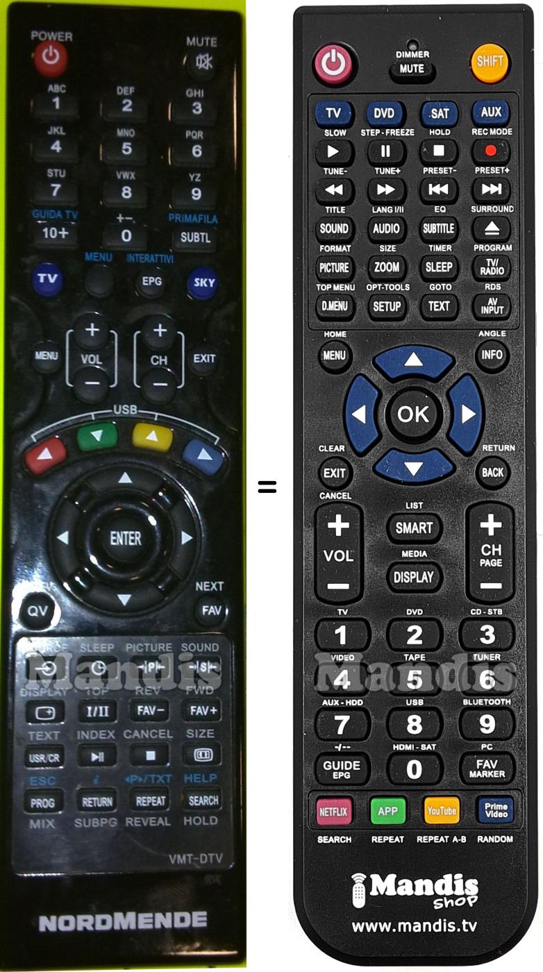 Este mando a distancia reemplaza completamente tu VMT-DTV y ofrece todas las funciones del original.