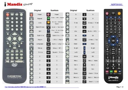 Este mando a distancia reemplaza completamente tu NORTEK001 y ofrece todas las funciones del original.