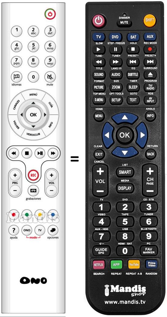 Mando a distancia que reemplaza al original en todas sus funciones.