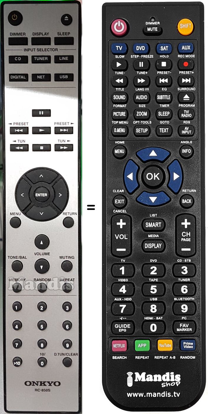 Mando a distancia que reemplaza al original en todas sus funciones.