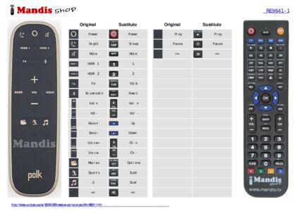 Este mando a distancia reemplaza completamente tu Polk (RE9641-1) y ofrece todas las funciones del original.