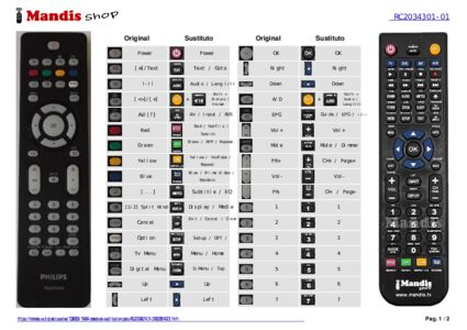 A continuación, le mostraremos la correspondencia entre cada uno de los botones del mando original y el botón que realiza la misma función en el mando de sustitución. En algunos casos, es posible que necesite presionar la tecla SHIFT antes de pulsar otro botón para realizar ciertas acciones. Estas funciones adicionales suelen ser poco utilizadas y se incluyen para facilitar su comprensión del nuevo mando a distancia, o porque el mando original tiene más botones que su equivalente.