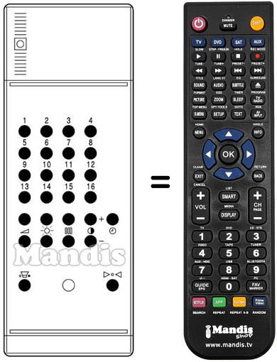 Mando a distancia que reemplaza al original en todas sus funciones. No se trata de una mando universal sinó de un mando que sustituye al original. Recibirá el mando completamente listo para hacerlo funcionar sólo necesita ponerle las pilas. No es necesario programarlo. Le damos total garantía de que el mando cumplirá con las mismas funciones del mando original.