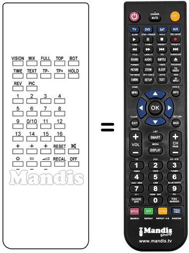Mando a distancia que reemplaza al original en todas sus funciones.