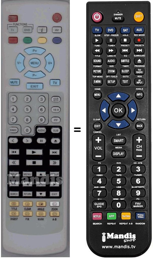Mando a distancia que reemplaza al original TM64 (631020001381) en todas sus funciones.
