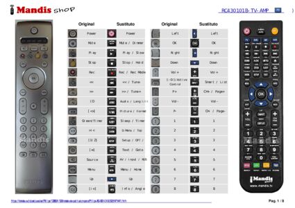 A continuación, le mostraremos la correspondencia entre cada uno de los botones del mando original y el botón que realiza la misma función en el mando de sustitución. En algunos casos, es posible que necesite presionar la tecla SHIFT antes de pulsar otro botón para realizar ciertas acciones. Estas funciones adicionales suelen ser poco utilizadas y se incluyen para facilitar su comprensión del nuevo mando a distancia, o porque el mando original tiene más botones que su equivalente.