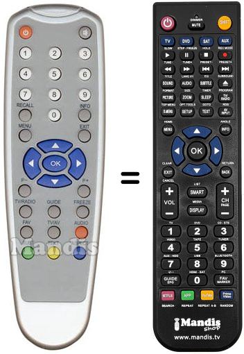 Mando a distancia que reemplaza al original RC 1227 en todas sus funciones.