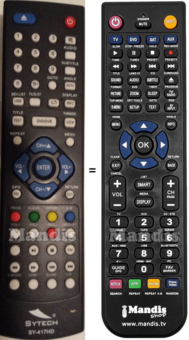 Este mando a distancia reemplaza completamente tu SY-417HD y ofrece todas las funciones del original.
