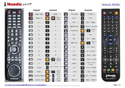 A continuación, le mostraremos la correspondencia entre cada uno de los botones del mando original y el botón que realiza la misma función en el mando de sustitución. En algunos casos, es posible que necesite presionar la tecla SHIFT antes de pulsar otro botón para realizar ciertas acciones. Estas funciones adicionales suelen ser poco utilizadas y se incluyen para facilitar su comprensión del nuevo mando a distancia, o porque el mando original tiene más botones que su equivalente.