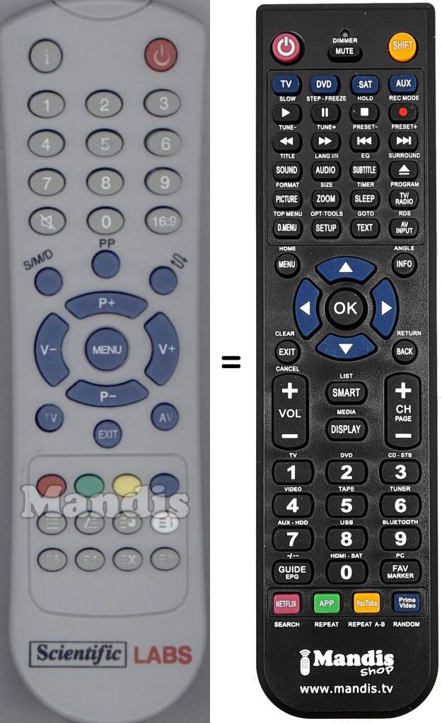 Mando a distancia que reemplaza al original Scientificlabs002 en todas sus funciones.