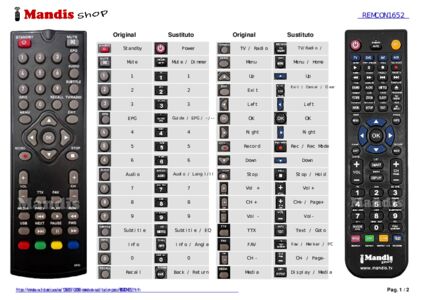Este mando a distancia reemplaza completamente tu REMCON1652 y ofrece todas las funciones del original.