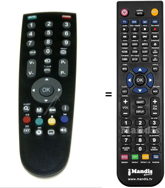 A continuación, le mostraremos la correspondencia entre cada uno de los botones del mando original y el botón que realiza la misma función en el mando de sustitución. En algunos casos, es posible que necesite presionar la tecla SHIFT antes de pulsar otro botón para realizar ciertas acciones. Estas funciones adicionales suelen ser poco utilizadas y se incluyen para facilitar su comprensión del nuevo mando a distancia, o porque el mando original tiene más botones que su equivalente.
