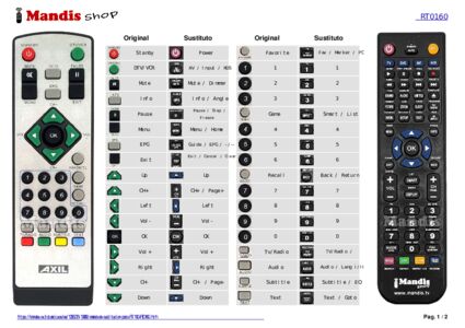 Este mando a distancia reemplaza completamente tu RT 160 (RT0160) y ofrece todas las funciones del original.