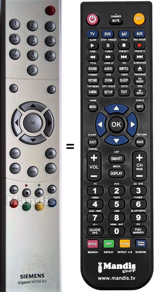 Mando a distancia que reemplaza al original en todas sus funciones.