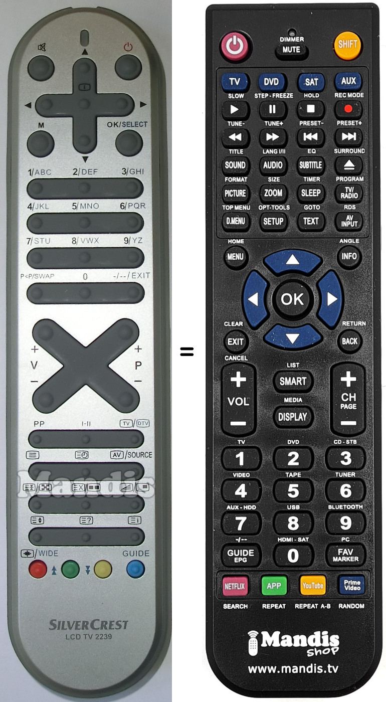 Mando a distancia que reemplaza al original LCDTV2239 (20457814) en todas sus funciones.