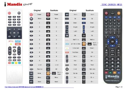 Se incluye un documento para ayudarte a usar el nuevo mando a distancia fácilmente, indicando la correspondencia de los botones.