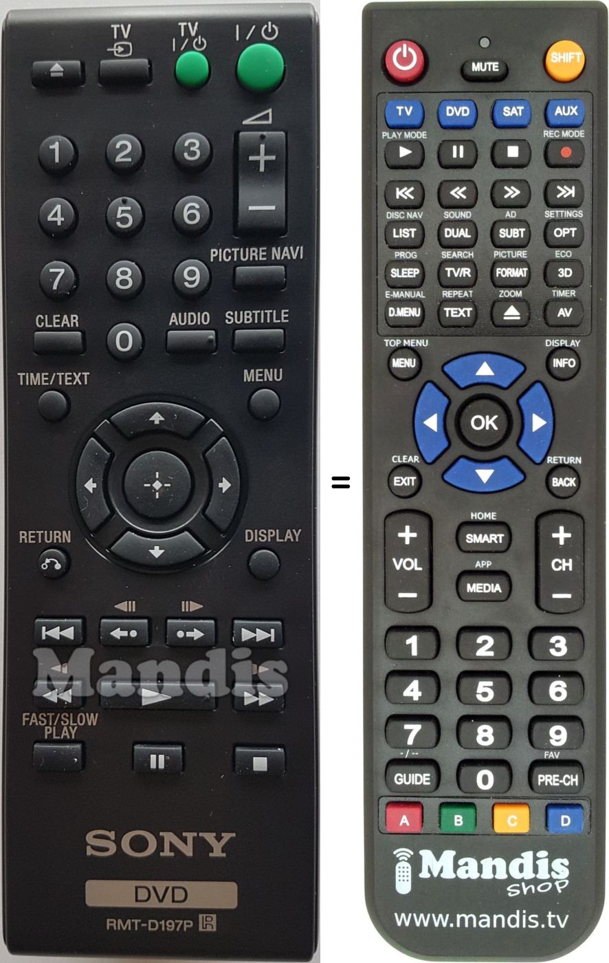 Este mando a distancia reemplaza completamente tu RMT-D197P (148942911) y ofrece todas las funciones del original.