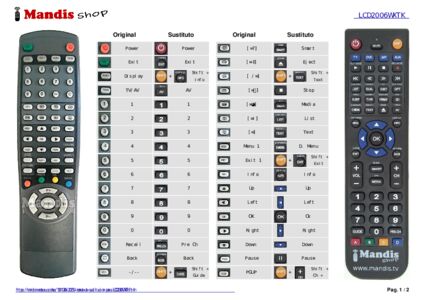 A continuación, le mostraremos la correspondencia entre cada uno de los botones del mando original y el botón que realiza la misma función en el mando de sustitución. En algunos casos, es posible que necesite presionar la tecla SHIFT antes de pulsar otro botón para realizar ciertas acciones. Estas funciones adicionales suelen ser poco utilizadas y se incluyen para facilitar su comprensión del nuevo mando a distancia, o porque el mando original tiene más botones que su equivalente.