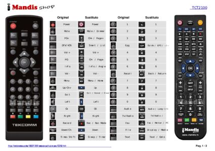 Este mando a distancia reemplaza completamente tu TCT2100 y ofrece todas las funciones del original.