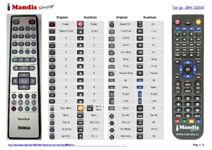 Inicio > Marcas > Mandos a distancia Targa > Mando a distancia para TARGA DRH5200X