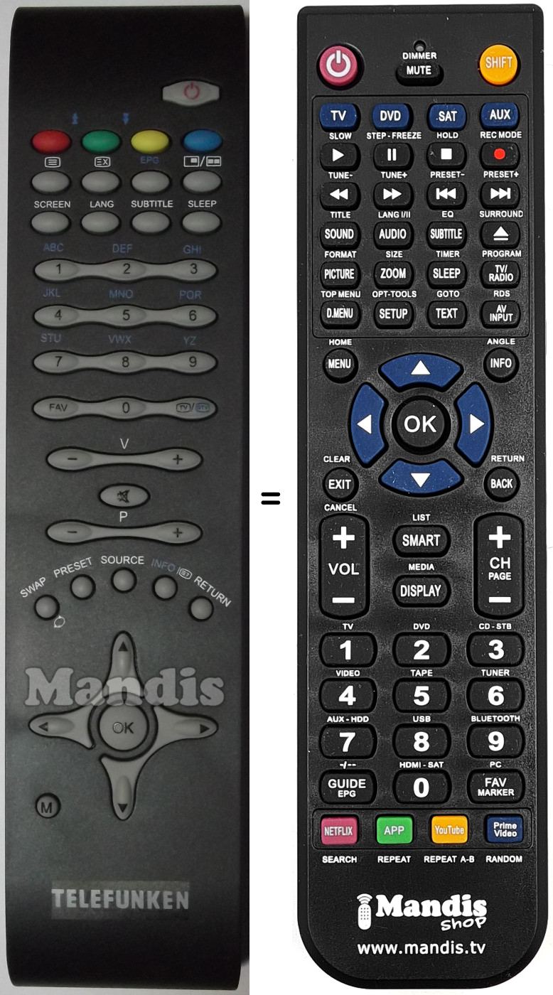 Mando a distancia que reemplaza al original en todas sus funciones.