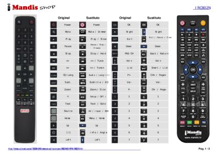 Se incluye un documento para ayudarte a usar el nuevo mando a distancia fácilmente, indicando la correspondencia de los botones.