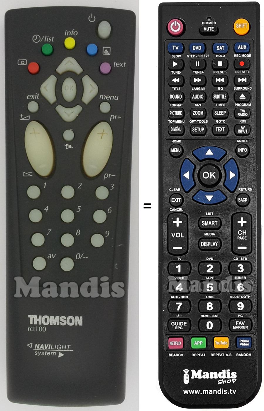 Este mando a distancia reemplaza completamente tu RCT 100 (10546340) y ofrece todas las funciones del original.