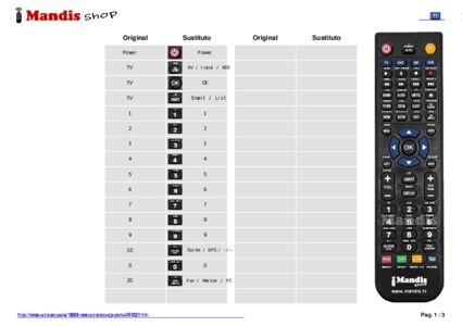 Se incluye un documento para ayudarte a usar el nuevo mando a distancia fácilmente, indicando la correspondencia de los botones.