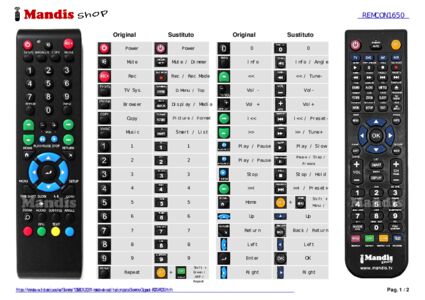 Se incluye un documento para ayudarte a usar el nuevo mando a distancia fácilmente, indicando la correspondencia de los botones.