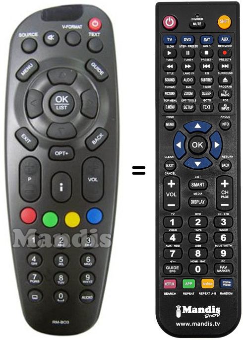 Mando a distancia que reemplaza al original en todas sus funciones.